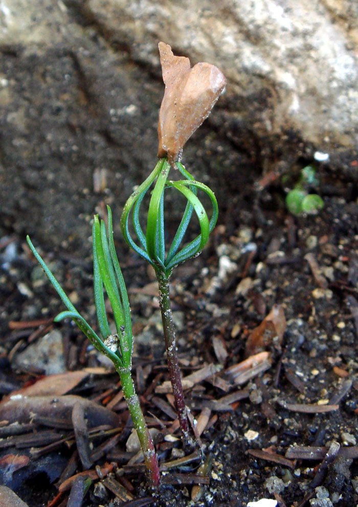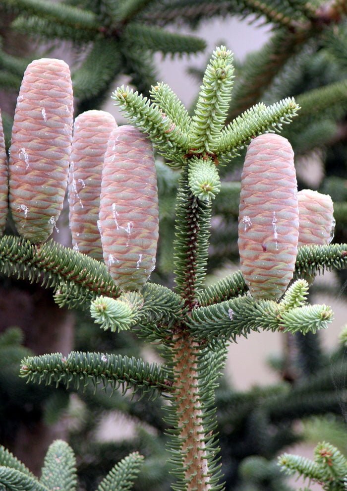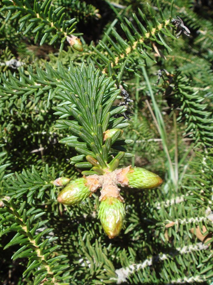 The female cone is made up of many individual triangular pieces; a small membranous wing that helps in wind dispersal, and the attached seed. These cones disintegrate and release the seeds during the autumn. Pinsapos, as they are known in Spanish, are biologically fir trees and belong to the group of gymnosperms or plants without true flowers such as cedars, pines and cypresses.